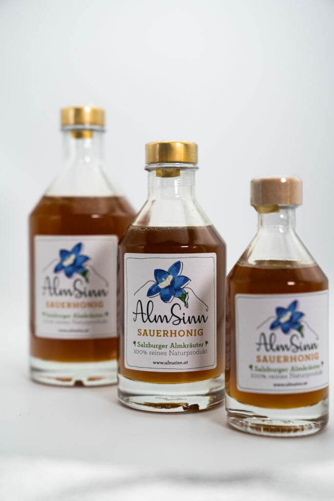 Der AlmSinn-Sauerhonig ist ein Sirup aus Honig und Kräuter-Apfelessig © AlmSinn